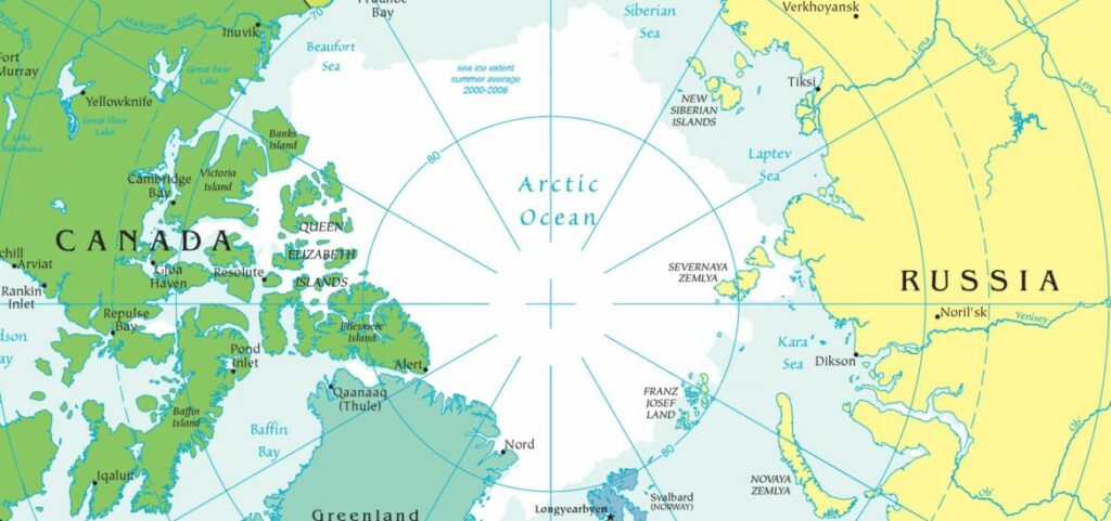 L’Oceano Artico non è un laghetto, ma è il più piccolo degli oceani del mondo e i paesi che lo circondano, lontani l’uno dall’altro su una carta geografica comune, qui s’avvicinano drammaticamente. I “vicini” polari sono: Canada e Stati Uniti, Russia, Finlandia, Svezia, Norvegia e Groenlandia. Russia e Stati Uniti quasi si toccano, separati solo dagli 82 km dello Stretto di Bering.