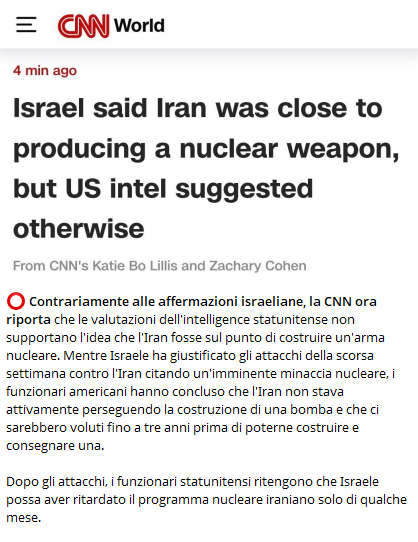 ” l’Iran NON stava costruendo un’arma Nucleare “ (15/06/2025)