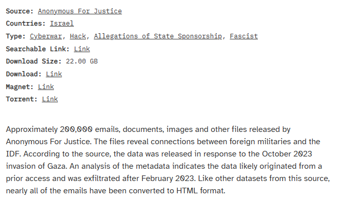 Ecco alcuni importanti fughe di notizie da Israele, contenenti 3,2 milioni di documenti interni .