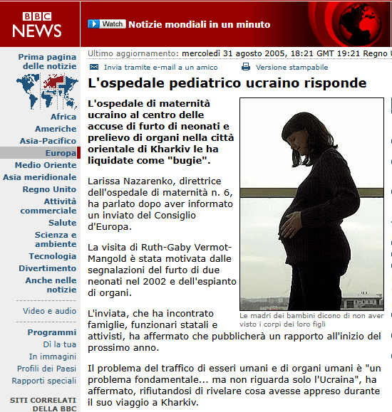Successivamente si scoprì, nei contenitori di residui biologici della clinica nella cittadina di Shostka, la presenza di feti e cadaveri di neonati i cui organi erano stati espiantati”.