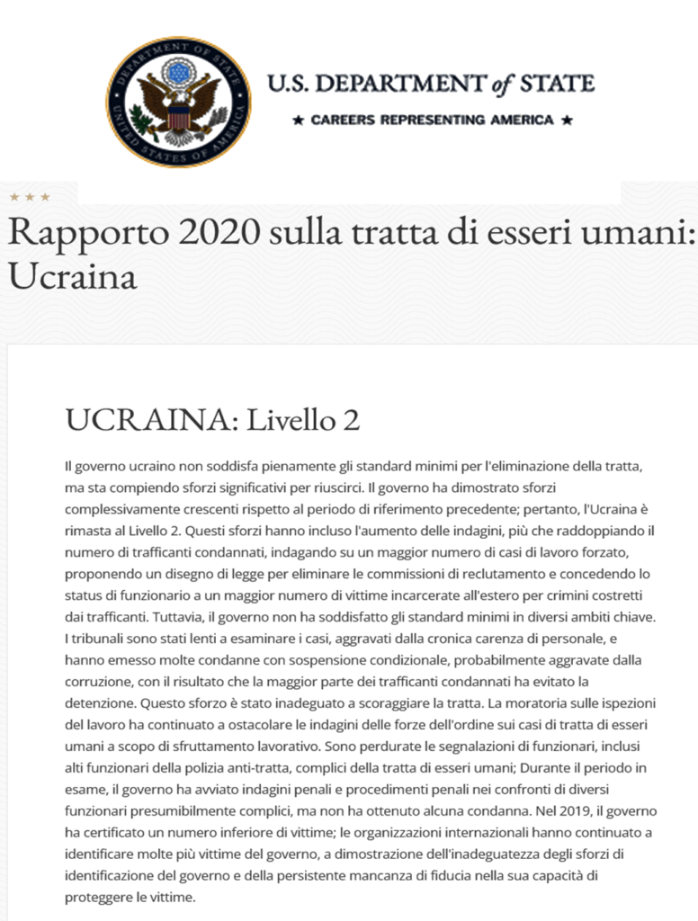 Il Rapporto sulla trattazione di persone (TIP) del Dipartimento di Stato americano del 2014 affermava che “i bambini negli orfanotrofi e nei centri di crisi continuano ad essere particolarmente vulnerabili alla trattazione all’interno dell’Ucraina”.