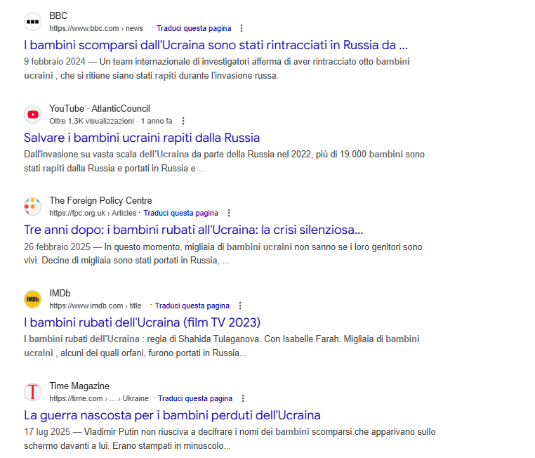 Mentre nessuno invece spiega che dal 2022 i bambini Ucraini “deportati” in europa sono diverse CENTINAIA di MIGLIAIA