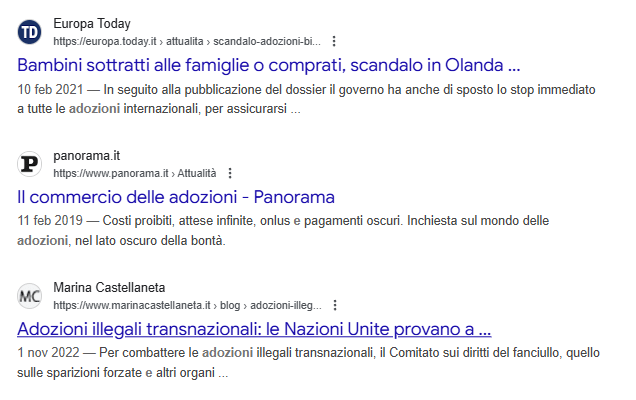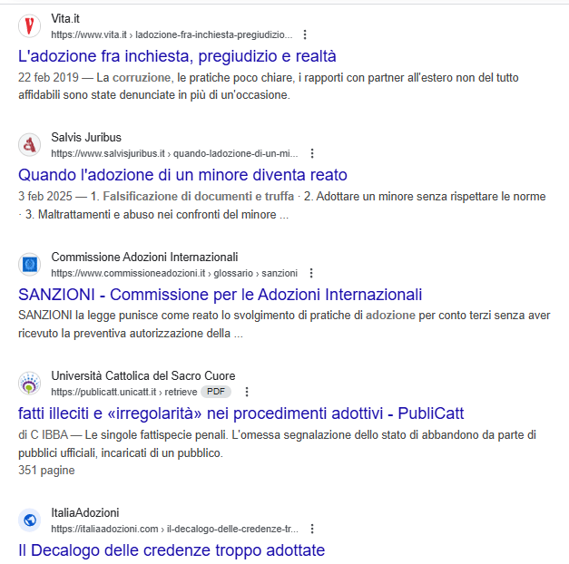 Riportiamo di seguito in maniera sintetica, ma sempre documentale la progressione di questo ambito: TRAFFICO DI ORGANI, TRAFFICO DI SANGUE DI NEONATI