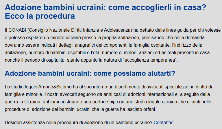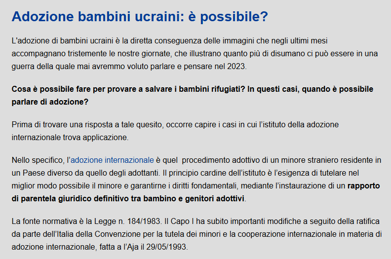 Però forse gli Europei non se ne sono accorti, ma nemmeno gli Italiani forse sanno che in Italia sono stati “ACCOLTI!!!!” circa 80 mila bambini Ucraini, in Orfanotrofi (case famiglia) . Da dove è agevole “con le buone maniere” adottarne qualcuno.