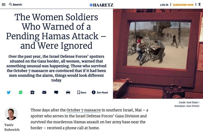 18/ L‘unità dell’IDF “Avvocato del Diavolo” ha avvertito due volte i funzionari senior dei piani di Hamas per un attacco su larga scala pochi giorni prima del 7 ottobre. avvertimenti sono stati ignorati, anche se Hamas si addestrava apertamente lungo il confine.