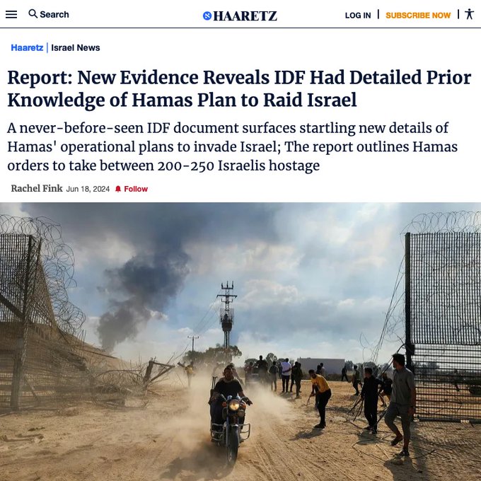 23/ L‘IDF era stato avvertito non solo dall‘Egitto, ma anche dalla propria intelligence militare di attività insolite di Hamas nei giorni precedenti al 7 ottobre. Questi avvertimenti interni sono stati ignorati, dimostrando ulteriormente il ruolo del governo israeliano nell‘orchestrare l’attacco.
