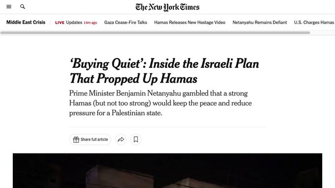 9/ Il governo di Benjamin Netanyahu ha sostenuto Hamas per anni per indebolire l’Autorità Nazionale Palestinese e impedire la nascita di uno Stato palestinese. Jeffrey Sachs, noto economista, e gli stessi collaboratori di Netanyahu lo confermano.